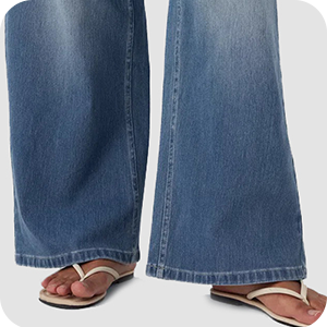 These jeans feature an asymmetric waist and low-rise design for a modern, effortless look. With wide-leg and relaxed fit, they offer comfort and freedom of movement for casual activities. Equipped with back and side pockets, zip fly, and floor-length cut, they are both stylish and functional. Made with medium four-way stretch fabric, they adapt to your body and move with you all day.