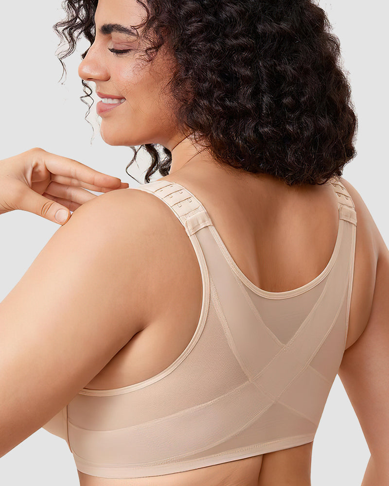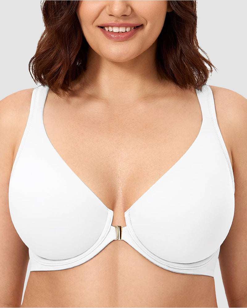 Details·X-shape back for great support and posture·Front close for easy on and off-Underwire for lift, especially for fuller figures·No-padding,full- coverage cups for comfy compression and spillage prevention·Plunge design with seamless cups for an invisible fit under low-cut dresses.
